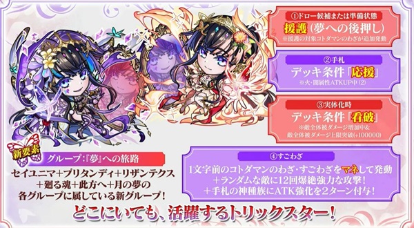『共闘ことばRPG コトダマン』レジェアイ超えるか?7.5周年グランドシヨウチヨウ、性能がヤバ過ぎる件!条件なしモノマネ、ぶっ壊れ特性が複数、神種族サーチで引かないは無いキャラに……。