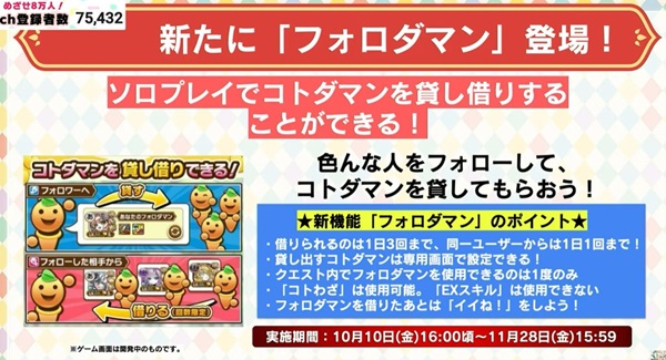 10月10日からはフォロダマン機能も期間限定で実装されるので、コトモダチIDも掲載しておきます!!