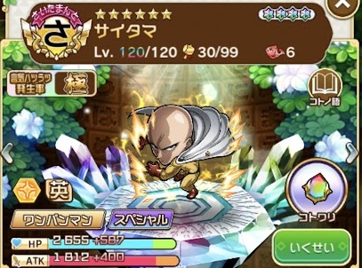 サイタマが完凸になりましたし、今回のワンパンマンコラボはガッツリ楽しみます!!完凸なのでコトワザが簡単に発動するのがチョー気持ち良いです。