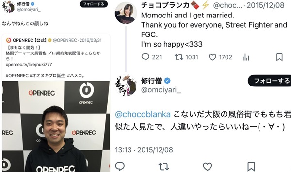 『ストリートファイター6』FAVとの契約満了が発表された修行僧さん(有名リュウ使い)ですが、インフルエンサーの滝沢ガレソ氏によってエグい過去ツイートが発掘されました。